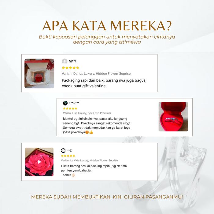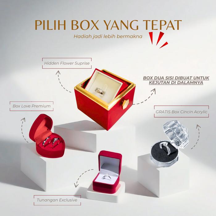 Dapatkan promo spesial: GRATIS Box Cincin Acrylic dalam setiap pembelian. Hati-hati terhadap produk serupa dengan kualitas rendah yang mudah menghitam dan luntur. Percayakan hanya pada Lexana Jewelery untuk simbol cinta Anda yang abadi dan sempurna.
