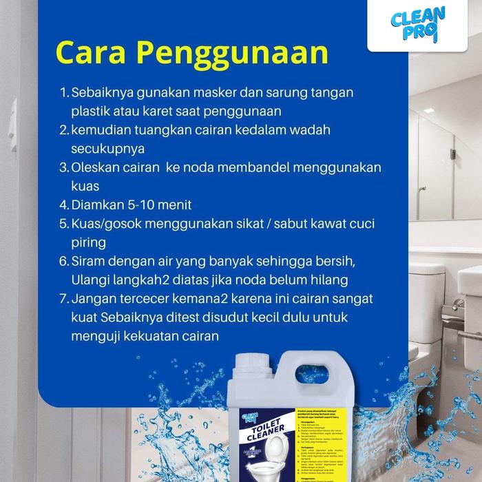 Hilangkan kerak, jamur, dan noda membandel di kamar mandi dengan mudah! Cleanpro Toilet Cleaner adalah cairan pembersih serbaguna yang sangat ampuh, dirancang khusus untuk mengatasi kotoran paling keras sekalipun tanpa perlu disikat. Dengan formula khusus, produk ini bekerja cepat dan tidak merusak warna atau nat keramik asli Anda.