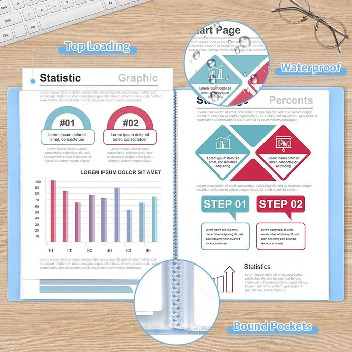 Dilengkapi dengan 20 lembar pelindung (20 pockets) yang dapat menampung hingga 40 halaman kertas, map ini menjadi solusi penyimpanan yang sempurna. Setiap lembar memiliki bukaan di bagian atas yang lebar, memudahkan Anda memasukkan dan mengeluarkan kertas tanpa perlu melepasnya dari binder.