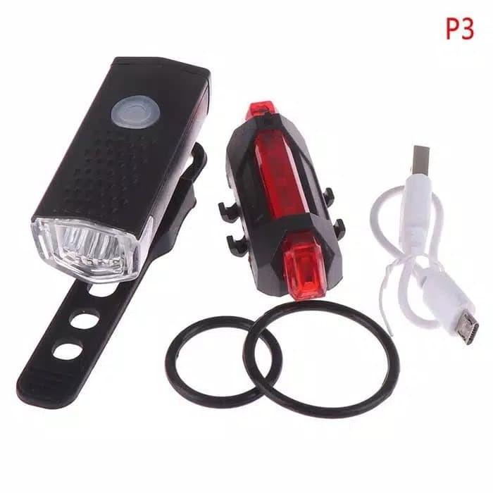 | Paket Lengkap | 1x Lampu Depan, 1x Lampu Belakang, 1x Braket Pemasangan, 2x Kabel USB |