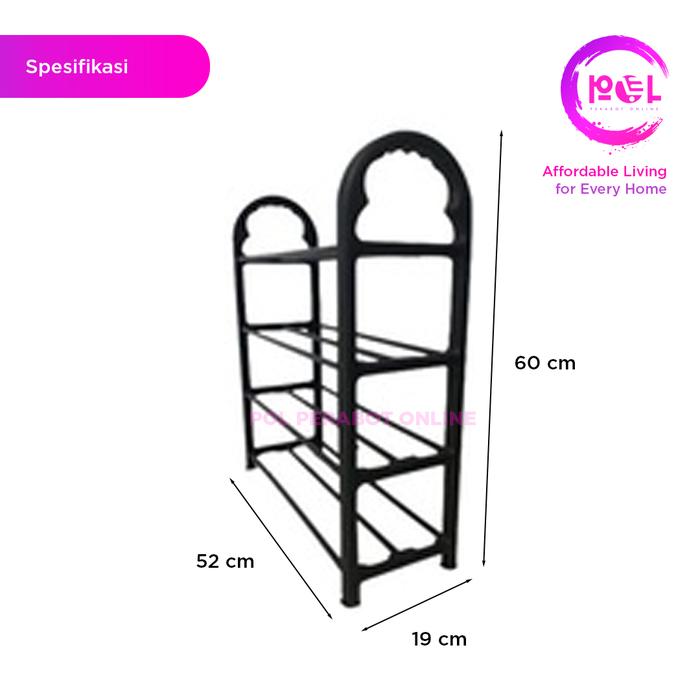 | Kapasitas | 4 susun (muat hingga 8-12 pasang sepatu) |