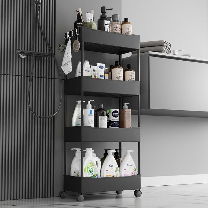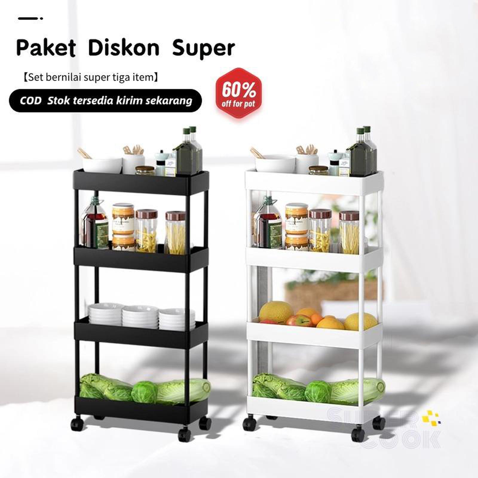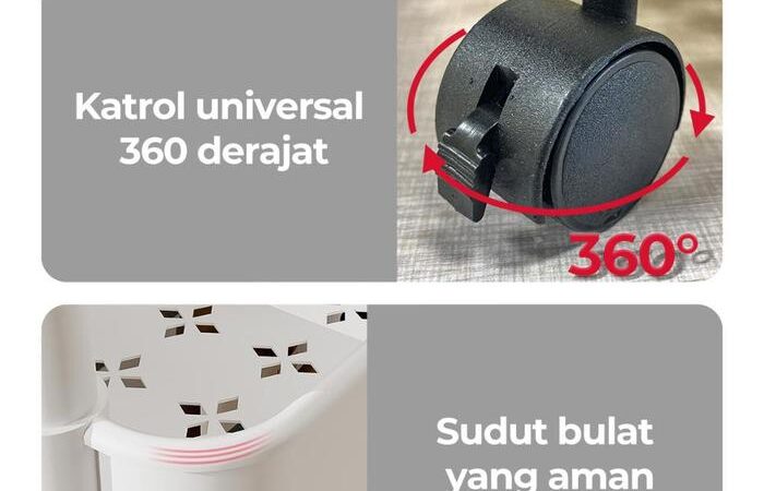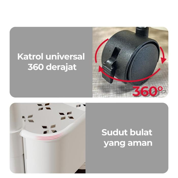 Rak ini dilengkapi dengan 4 roda sehingga mudah dipindahkan ke mana saja. Cocok untuk dapur sebagai rak bumbu, kamar mandi untuk menyimpan perlengkapan mandi, ruang tamu sebagai rak majalah, atau bahkan kamar tidur untuk meletakkan buku dan aksesori.