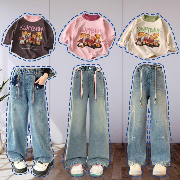 Tampil gaya dan nyaman dengan setelan celana jeans denim import pilihan! Dirancang khusus untuk anak perempuan usia 3 hingga 15 tahun, produk ini menggunakan bahan denim berkualitas tinggi yang lembut, tidak mudah kusut, dan tahan lama. Desainnya mengikuti tren fashion Korea yang kekinian, cocok untuk dipakai sehari-hari maupun acara khusus.