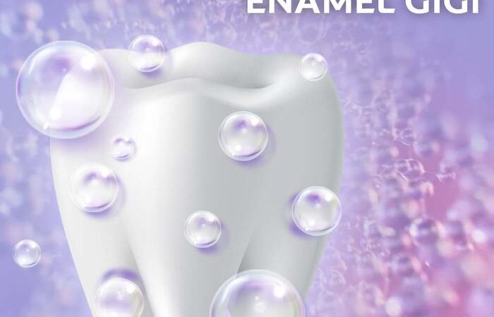 Enamel: Lapisan terluar gigi yang keras dan berfungsi melindungi bagian dalam gigi. Pewarnaan pada enamellah yang membuat gigi terlihat kuning.