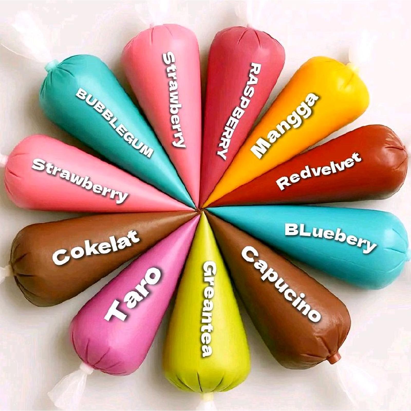 | Cokelat, Strawberry, Keju | 35, 50, 70, 130, 200 | Tekstur creamy dan rasa autentik |