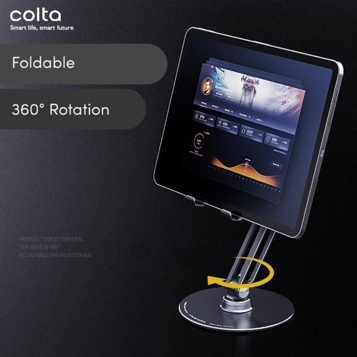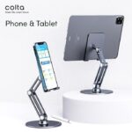 Tingkatkan pengalaman menonton dan bekerja Anda dengan Colta P5 360 Revolve Stand. Dudukan serbaguna yang terbuat dari material aluminium padat berkualitas tinggi ini didesain untuk menopang smartphone dan tablet Anda dengan aman dan elegan.