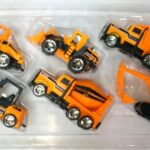Paket 8 Truk8Dump Truck, Ekskavator, Mobil Mixer Molen, Forklift, Truk Keruk, Truk Buldoser, Truk Bor Beton, + 1 Model Mystery Truck untuk kejutan!