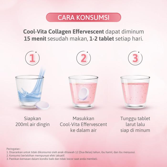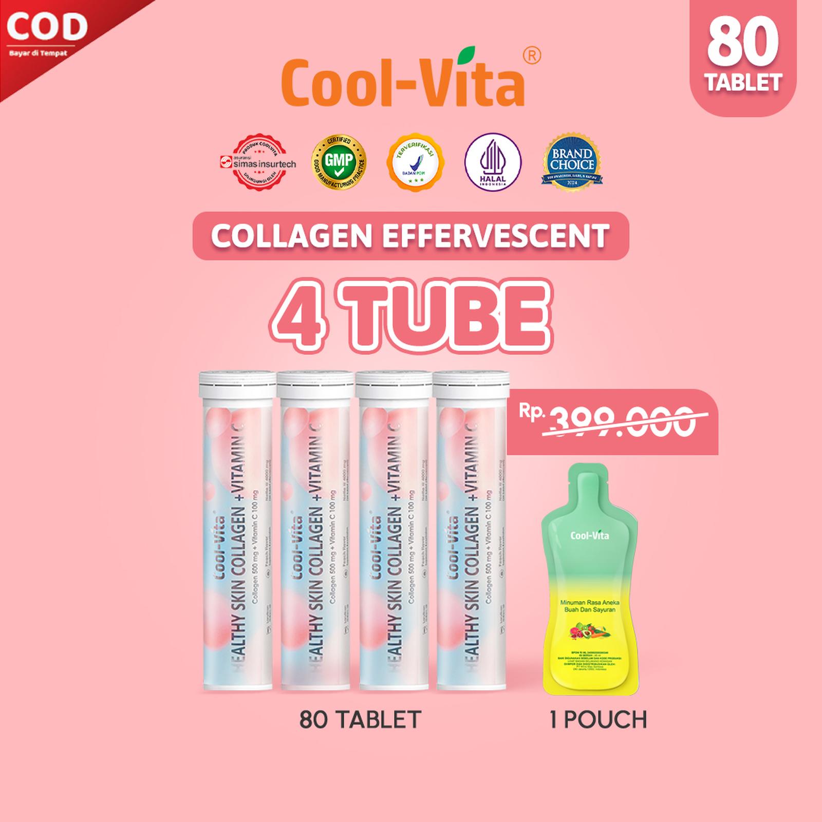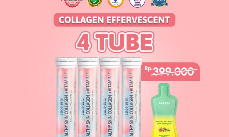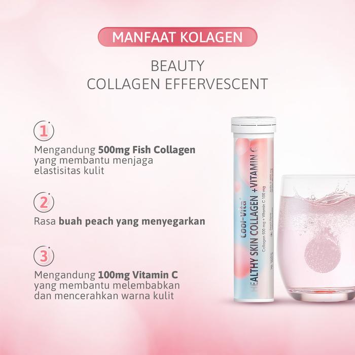 | 4 Tube Coolvita Rasa Peach (80 tablet) | Praktis & Mudah Dikonsumsi: 1 tube berisi 20 tablet. Larutkan 1 tablet dalam segelas air. Konsumsi 2x sehari setelah sarapan dan sebelum tidur. | Kesehatan Kulit: Kandungan Fish Collagen membantu menjaga elastisitas kulit, sementara Vitamin C melembabkan dan mencerahkan. |