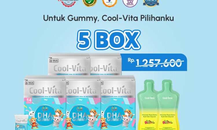 | Paket Produk | 5 Box DHA Gummy (@14 Gummy) + 2 Pouch Minuman Fiber Rasa Buah & Sayur |