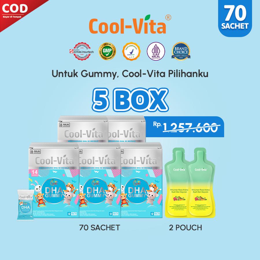 | Paket Produk | 5 Box DHA Gummy (@14 Gummy) + 2 Pouch Minuman Fiber Rasa Buah & Sayur |