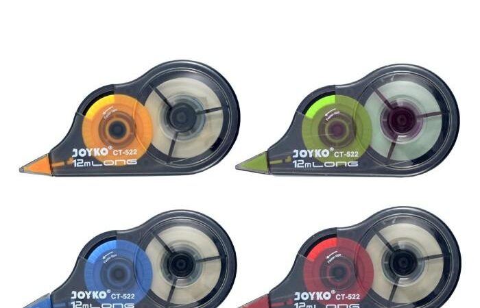 Correction Tape/Pita Koreksi: Alat koreksi berbentuk pita yang digunakan untuk menutupi kesalahan tulisan (biasanya tinta atau pulpen) dengan lapisan tipis berwarna putih. Berbeda dengan cairan koreksi (tip-ex), correction tape langsung kering saat digunakan dan dapat langsung ditulisi di atasnya.