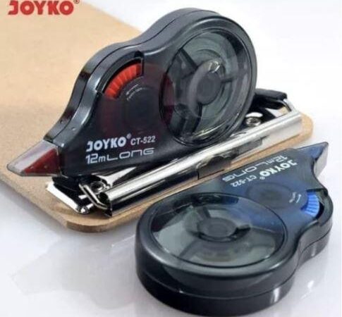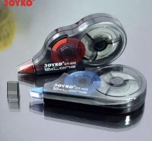 - Correction Tape/Tipex Kertas: Alat koreksi berbentuk pita yang digunakan untuk menutupi kesalahan tulisan dengan cara ditempel. Berbeda dengan tipex cair, correction tape langsung kering, tidak berbau, dan hasilnya menyerupai kertas.