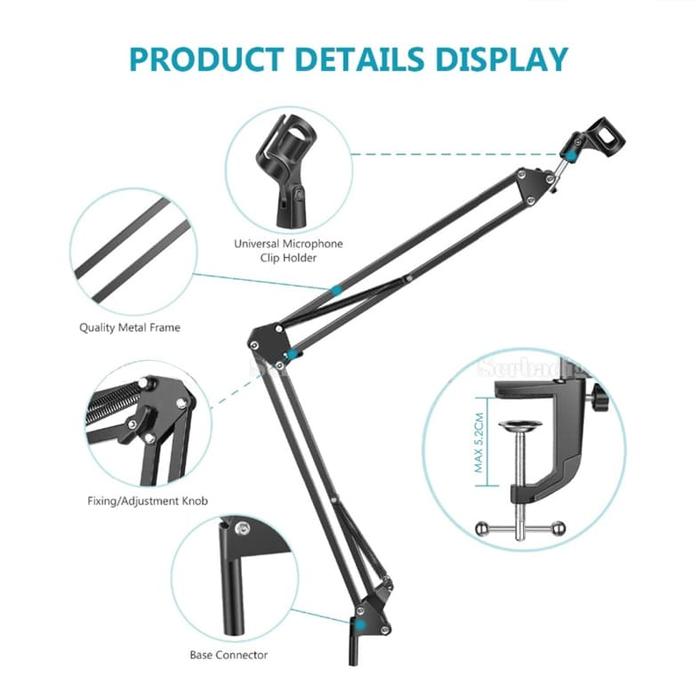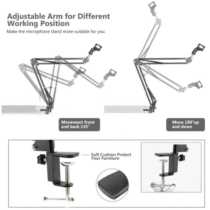 | Adjustability | Pan 360°, telescopic arm dengan knob switch untuk pengaturan mudah |