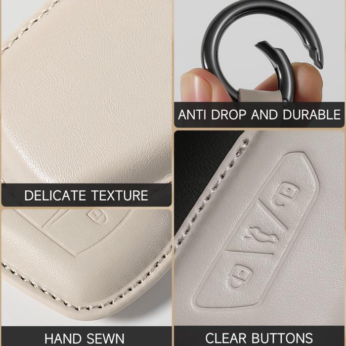 | BYD Atto 3, Dolphin, Seal, Sealion 7, M6, dan model lain dengan bentuk kunci serupa. | PU Leather premium. Warna: Beige/Ecru. | ✅ 1x Cover Key ✅ 1x Gantungan Kunci ✅ FREE Packing Kardus | Barang READY. Langsung order tanpa konfirmasi. Pastikan bentuk kunci Anda sama dengan foto produk sebelum memesan. |