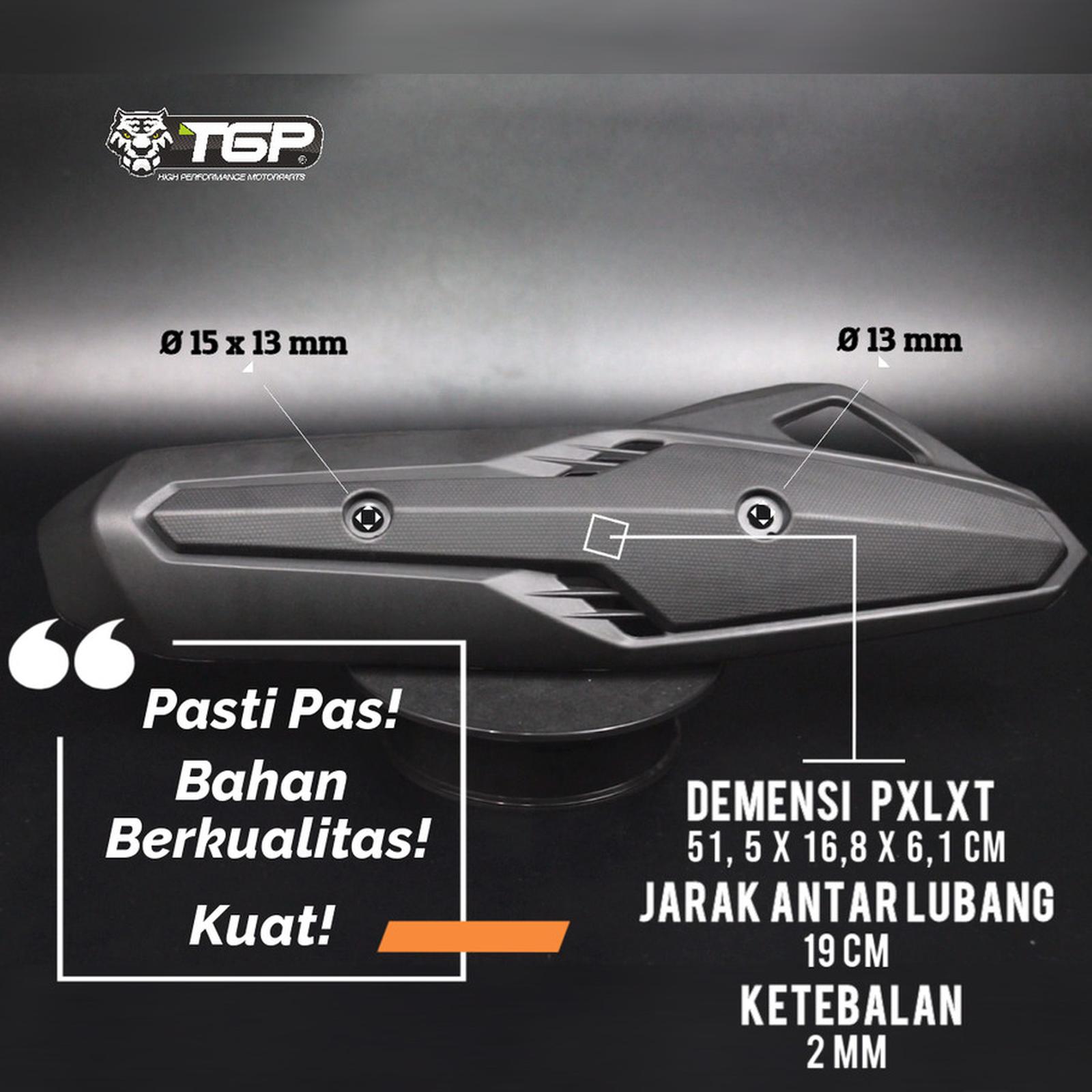 Tutup knalpot TGP adalah solusi terbaik untuk melindungi dan mempercantik tampilan motor Honda Vario Techno 125 Anda. Dibuat oleh pabrikan otomotif berpengalaman lebih dari 20 tahun dengan standar produksi tinggi dan teknologi canggih dari Jepang & Jerman, kualitas produk TGP terjamin.