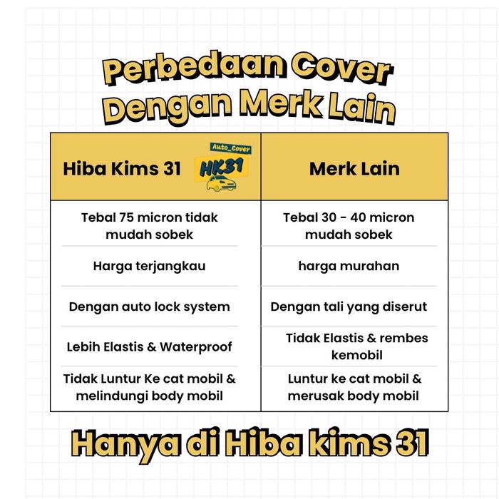 Kelebihan utama cover ini adalah kemampuannya melindungi kendaraan dari berbagai ancaman: cuaca ekstrem, sinar UV matahari, hujan, goresan dari benda tajam atau kasar, serta debu dan kotoran. Desainnya yang fit mengikuti bentuk mobil dan dilengkapi elastic band di sekelilingnya menjamin kesesuaian yang sempurna untuk berbagai jenis kendaraan.