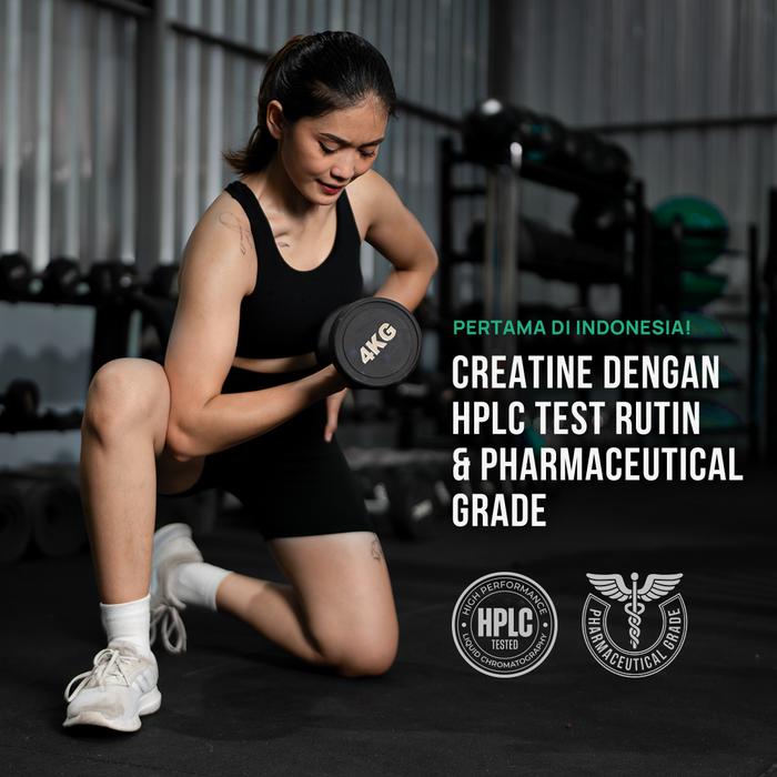 - Creatine Monohydrate: Salah satu bentuk creatine paling murni dan paling banyak diteliti. Zat ini disimpan di otot dan digunakan sebagai sumber energi cepat untuk kontraksi otot selama aktivitas berat atau high-intensity interval training (HIIT), sehingga meningkatkan performa dan membantu pertumbuhan otot.