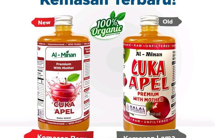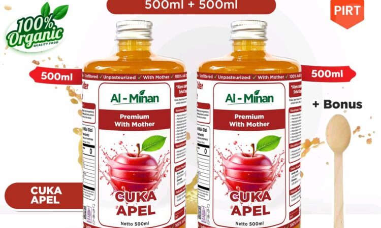 Rasakan kualitas premium Cuka Apel Al Minan yang 100% organik, telah tersertifikasi Halal dan PIRT. Dapatkan penawaran spesial Beli 1 Botol Gratis 1 Botol (@500ml) dengan harga grosir langsung dari produsen. Sangat cocok untuk program diet, detoks, dan kesehatan sehari-hari.