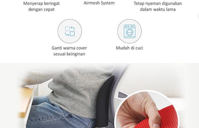 - Air-Mesh: Material berbentuk jaring (mesh) yang memiliki kemampuan sirkulasi udara sangat baik. Teksturnya yang berlubang membuat udara dapat bersirkulasi dengan bebas, sehingga memberikan kenyamanan ekstra dengan mengurangi rasa panas dan lembap saat duduk dalam waktu lama.