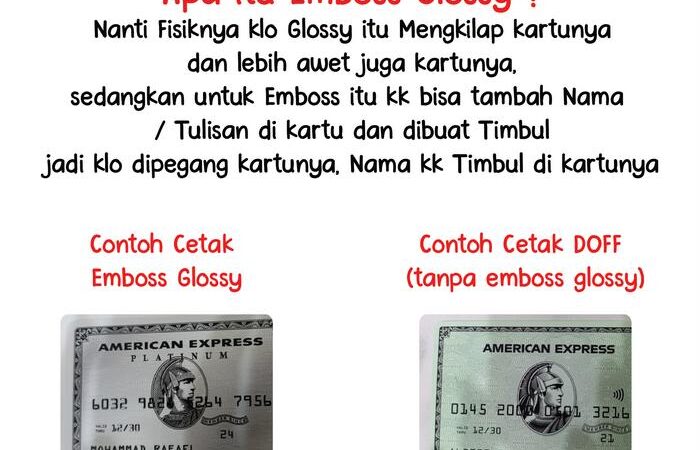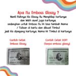 - Emboss: Teknik mencetak yang menghasilkan efek timbul atau raised pada permukaan kartu, biasanya untuk nama atau tulisan tertentu.