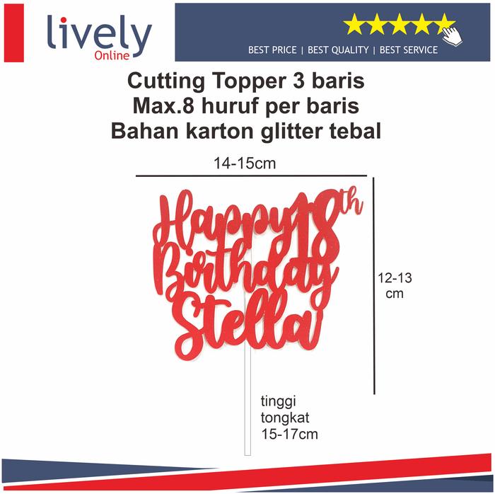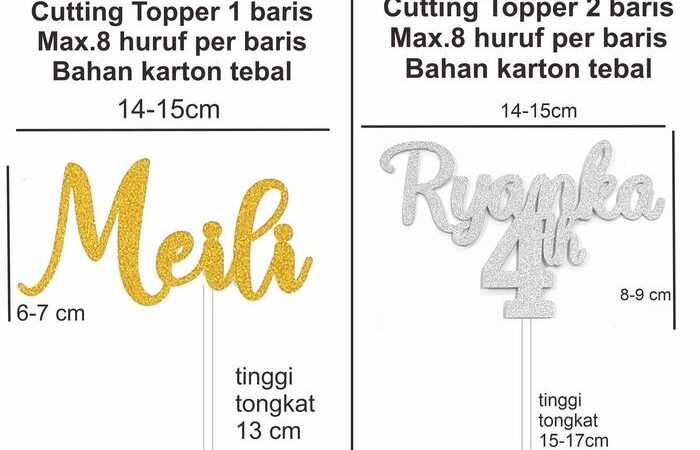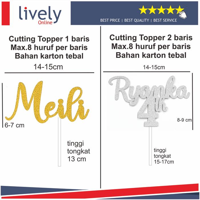 | Topper Tiga Baris | 8 huruf per baris | Mulai Rp 35.000 |