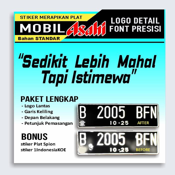 | Kemudahan Pesan | ORDER 1 saja, langsung dapat stiker plat depan-belakang lengkap (logo + garis). |