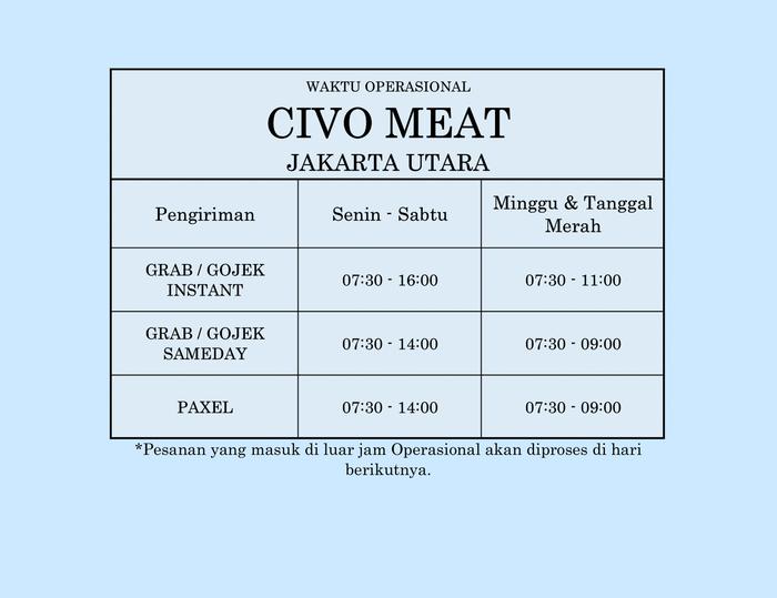 Tersedia di seluruh cabang Civo Meat:
