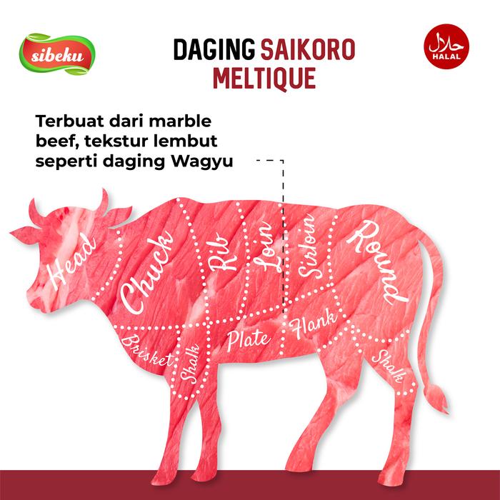 Raih pengalaman kuliner restoran premium langsung di dapur Anda dengan Daging Sapi Meltique Saikoro. Terbuat dari marble beef Australia berkualitas tinggi, setiap potongannya memiliki lemak yang tersamar sempurna (marbling) yang menjamin kelembutan dan cita rasa luar biasa saat dimasak. Teksturnya sangat juicy dan empuk, mirip dengan daging wagyu, membuatnya menjadi pilihan utama untuk hidangan istimewa.