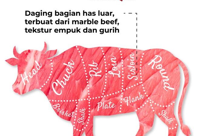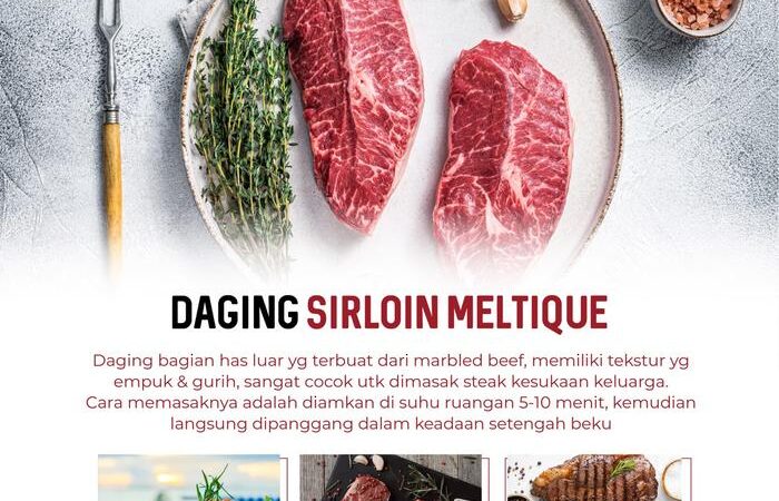 - Sirloin: Bagian daging sapi yang berasal dari punggung belakang, dikenal dengan teksturnya yang padat dan beraroma kuat, sering digunakan untuk steak.