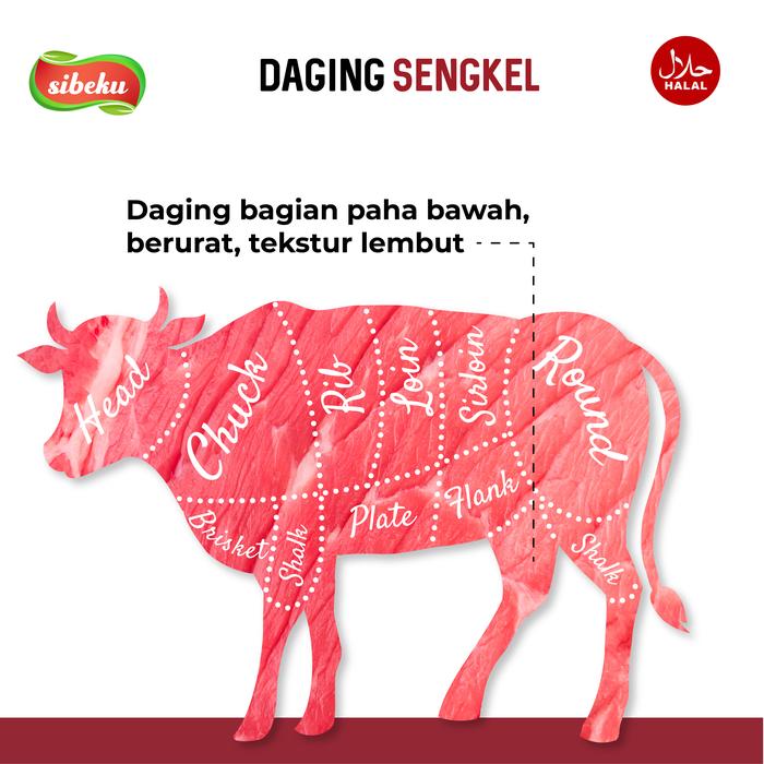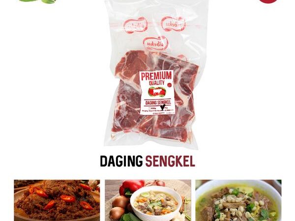 Daging sapi sengkel dari Australia dipilih dari peternakan terbaik dunia dengan standar kualitas tinggi. Teksturnya lembut dengan serat urat yang membentuk pola khas (“sengkel kembang”), membuatnya ideal untuk olahan rendang, sup, bakso urat, soto, dan hidangan tradisional lainnya. Diproses secara higienis dan diawasi ketat untuk menjamin keamanan konsumen.