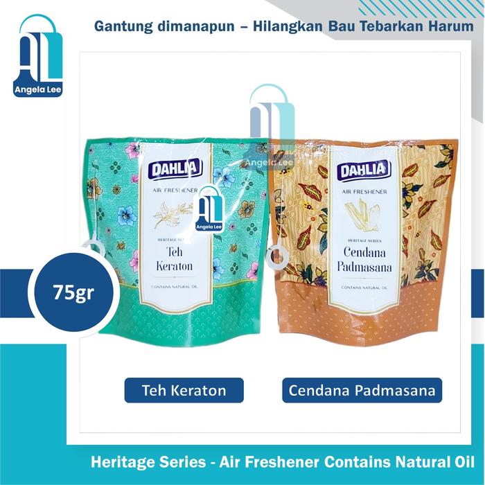 Hadirkan nuansa klasik yang elegan dan harum alami yang menyegarkan untuk ruangan Anda. Dahlia Gantung Heritage Series diformulasikan khusus dengan minyak alami untuk memberikan keharuman yang tahan lama dan aromaterapi yang menenangkan. Cocok digunakan di mobil, ruangan ber-AC, hotel, kantor, atau area lain yang membutuhkan penyegar udara. Sangat mudah digunakan: cukup gunting kemasan plastiknya sesuai petunjuk, lalu gantung atau letakkan di area yang diinginkan. Dapatkan sensasi kesegaran dan keharuman premium yang membawa ketenangan khas keraton.