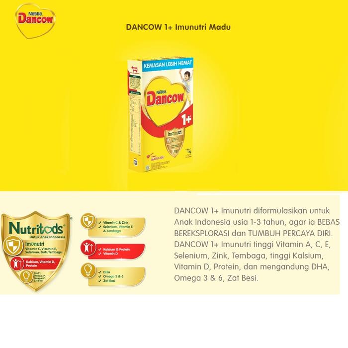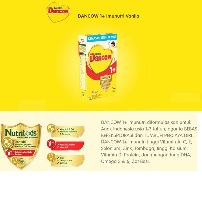 Dukung periode emas tumbuh kembang si Kecil usia 1-3 tahun dengan nutrisi terbaik. Dancow 1+ diformulasikan khusus dengan kombinasi Protein, Makronutrien, dan Mikronutrien untuk membantu anak tumbuh kuat dan sehat.
