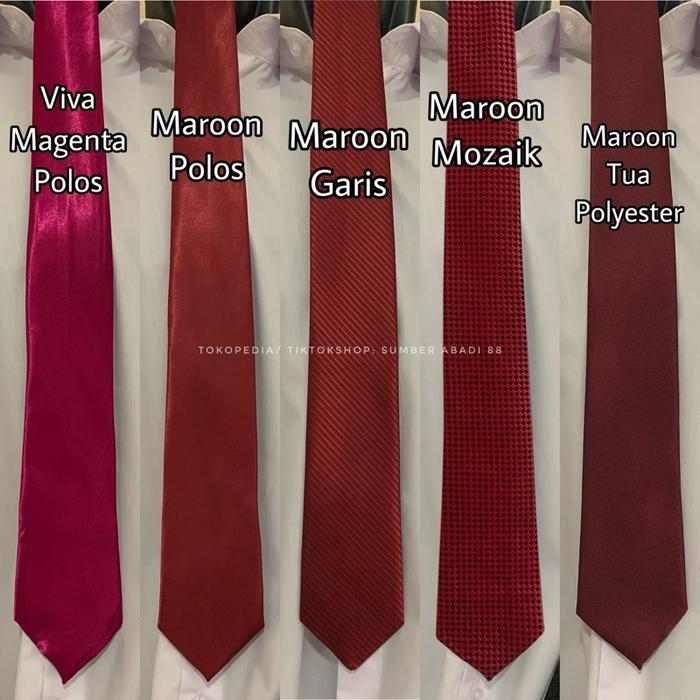 | Motif & Warna | Polos dan motif garis salur (pilihan: merah, red maroon, marun) |