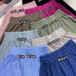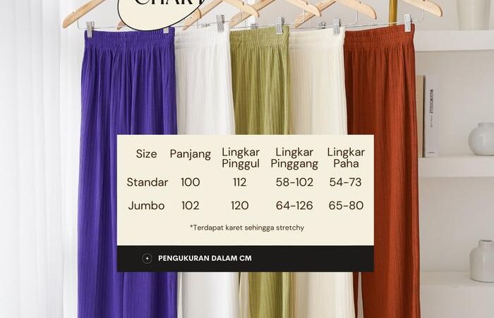 Setiap celana memiliki berat sekitar 350 gram. Tersedia dalam berbagai pilihan warna elegant. Warna cerah (seperti white dan cream) disarankan dikenakan dengan inner/legging. Warna Seri Misty (Dark Grey, Beige, Light Grey, Charcoal) memiliki handfeel yang sedikit berbeda karena menggunakan benang two tone.