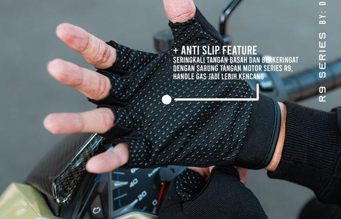 - Half Finger (Jari Terbuka): Desain sarung tangan dimana bagian ujung jari tidak tertutup, memberikan sensasi lebih terbuka dan memudahkan penggunaan layar sentuh.