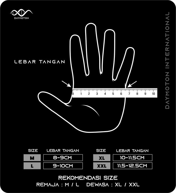 | Grip Mantap & Anti Slip | Dilengkapi fitur Anti-Slip pada telapak tangan untuk cengkeraman yang lebih baik pada handle gas, meningkatkan kontrol dan keamanan. |