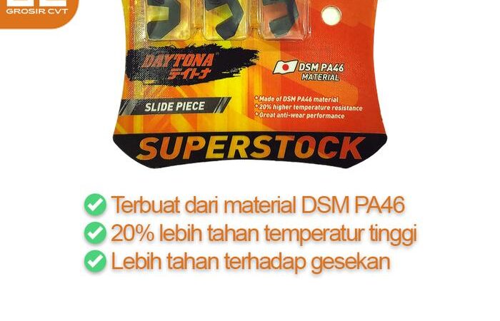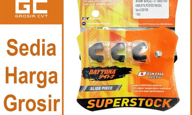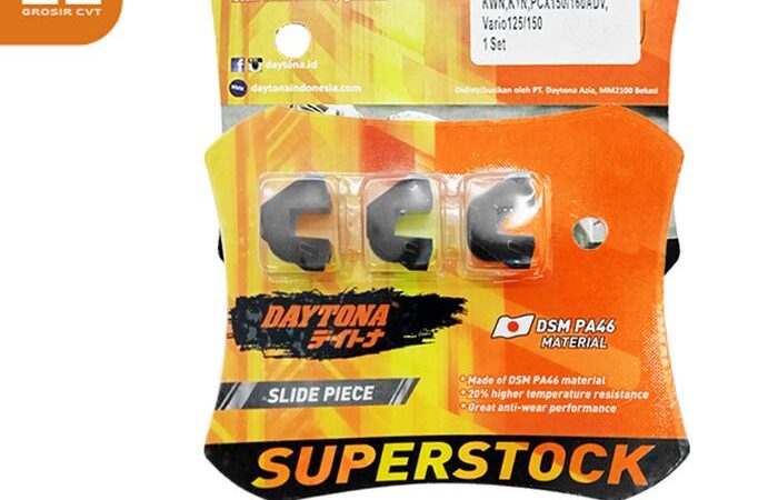 Optimalkan performa CVT motor matic Anda dengan Daytona Slide Piece SuperStok 5016. Komponen krusial ini dirancang khusus untuk model Honda Vario 125/150, PCX 125/150/160, ADV 150/160, serta berbagai model lainnya.