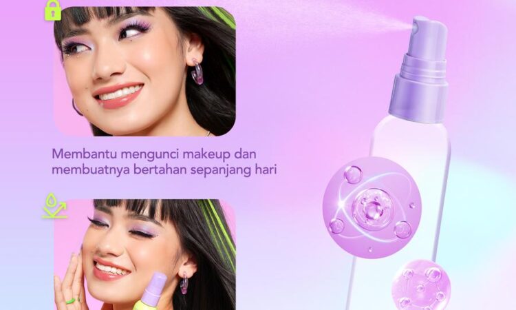 - Semprotkan ke wajah setelah makeup selesai dengan gerakan X (seluruh wajah) dan T (area T-zone).