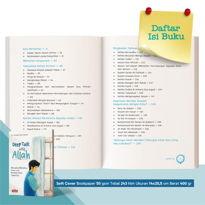 Deep Talk dengan Allah adalah tempat ternyaman untuk menuangkan segala keluh kesah. Adukan lelahmu, ceritakan masalahmu, sampaikan semua keinginan dan kesulitanmu. Menangislah kepada-Nya dalam doa. Dialah Tuhan Semesta Alam yang akan memperbaiki seluruh urusanmu.
