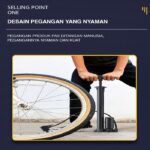 Dilengkapi dengan pegangan ergonomis yang nyaman, proses memompa menjadi lebih efisien dan tidak melelahkan. Dilengkapi tiga adapter (Universal, French, dan American), membuatnya sangat kompatibel dengan hampir semua jenis katup udara.