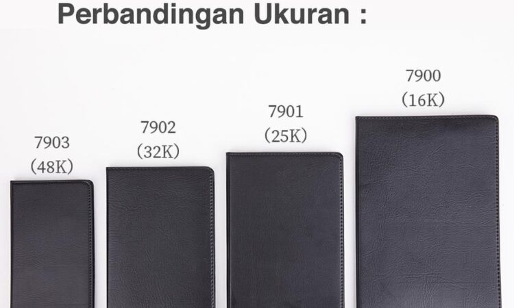 - Ukuran 25K: Standar ukuran notebook (20,5 x 14,3 cm), lebih kecil dari A5 tetapi cukup luas untuk catatan harian.