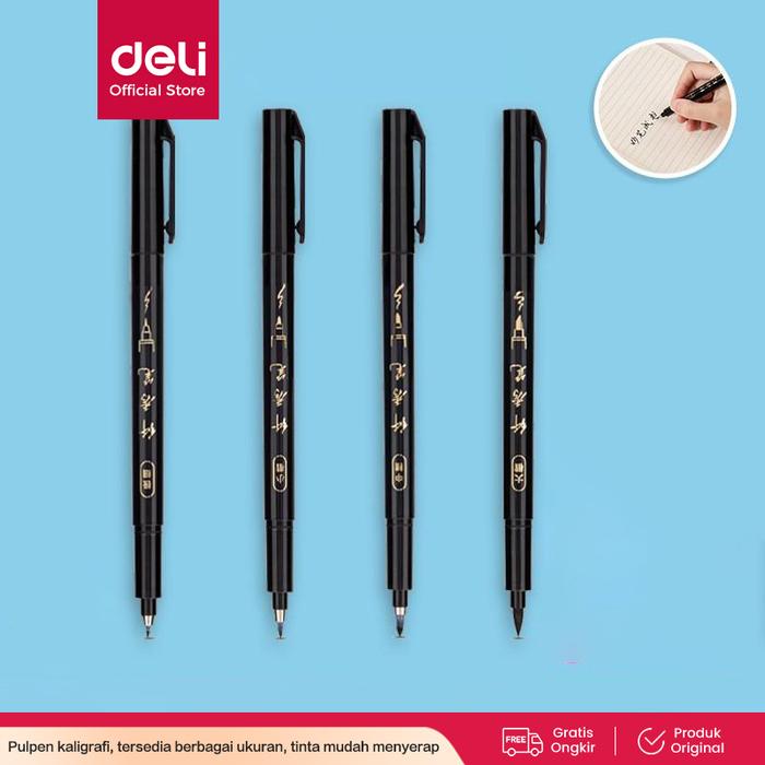 Rasakan pengalaman menulis yang memuaskan dengan Deli Calligraphy Pen. Ujung pena yang besar menghasilkan garis tebal dan jelas, sempurna untuk berbagai gaya kaligrafi. Tinta berkualitas tinggi mengalir sempurna tanpa noda, cepat kering, dan hasil tulisan Anda awet. Ideal untuk hobi, proyek seni, hingga keperluan sekolah.