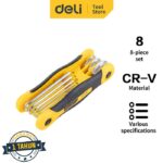 | Fitur Utama | – Terbuat dari material Chrome Vanadium berkualitas tinggi untuk kekuatan dan ketahanan maksimal. – Permukaan berlapis nikel, tahan karat dan awet. – Penandaan ukuran menggunakan teknologi laser-marking, jelas dan tidak mudah luntur. – Desain lipat dan dapat diputar, sangat praktis untuk disimpan dalam kotak工具 atau dibawa ke mana saja. – Cocok untuk melepaskan dan mengencangkan baut segi enam (baut allen) pada berbagai peralatan rumah tangga, sepeda, furnitur, dan elektronik. |