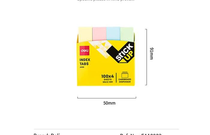 Tingkatkan efisiensi dan kerapian sistem penandaan dokumen Anda dengan Deli Index Tabs Soft Color. Setiap kemasan berisi 400 lembar pembatas yang terbagi dalam 4 warna pastel menawan: kuning, pink, biru, dan hijau. Warna-warna lembut ini memudahkan klasifikasi dan navigasi untuk berbagai keperluan.