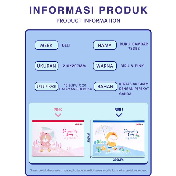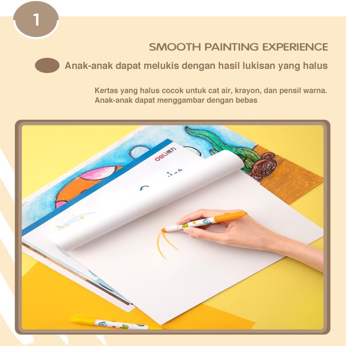 Solusi tepat untuk kebutuhan menggambar, melukis, atau menulis dengan kualitas premium! Buku gambar Deli ini hadir dalam dua ukuran praktis: