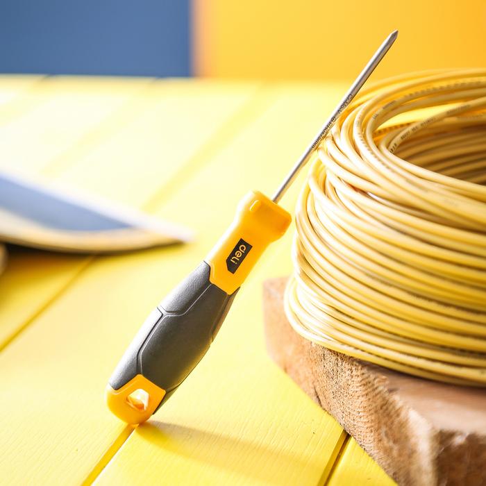 | Desain Handle | Ergonomis dengan tekstur anti-slip, anti minyak, dan anti gores. Desain khusus mencegah obeng menggelinding di permukaan. |
