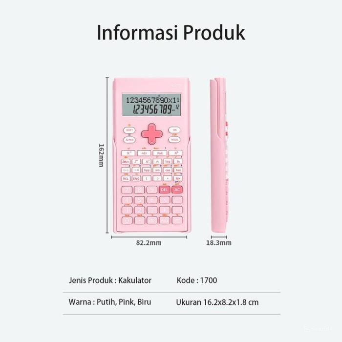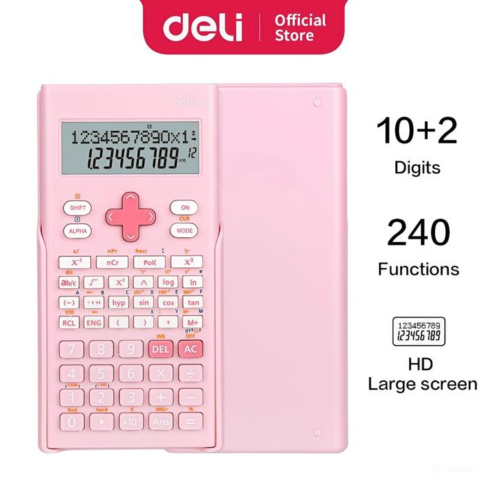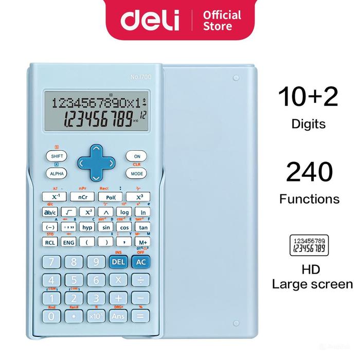 Kalkulator ilmiah Deli adalah solusi komprehensif untuk menghitung berbagai persamaan matematika, statistik, dan trigonometri. Dirancang khusus untuk pelajar, mahasiswa, insinyur, dan profesional keuangan. Desainnya yang ergonomis dan tombol responsif memastikan kenyamanan penggunaan dalam jangka panjang. Layar LCD lebar menampilkan 12 digit dengan kejelasan tinggi, mengurangi kesalahan input. Dilengkapi tutup keras untuk melindungi layar dan tombol dari goresan atau debu. Ukurannya yang ringkas dan ringan sangat portabel, mudah dimasukkan ke dalam tas atau binder. Ditenagai oleh dua baterai yang memberikan daya tahan luar biasa untuk penggunaan sehari-hari.