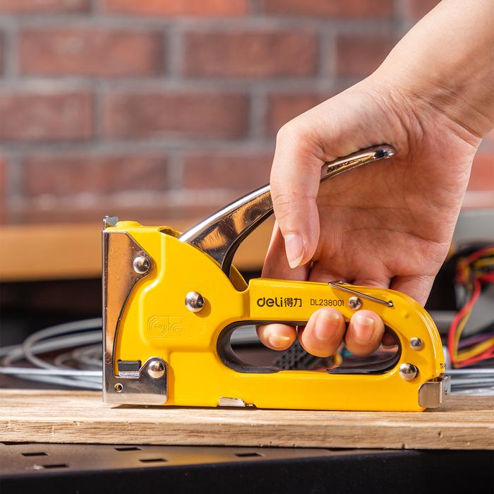 - Staple Gun Tembak: Alat perkakas yang bekerja dengan mekanisme tembak, menggunakan tenaga tekan untuk menembakkan staples ke dalam material dengan cepat dan kuat, menggantikan cara dipukul dengan palu.