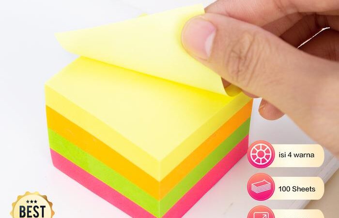 | Deli | 4 x 100 lembar | 51mm x 51mm | Fluorescent Rhodamine, Kuning, Oranye, Hijau | Kertas |
