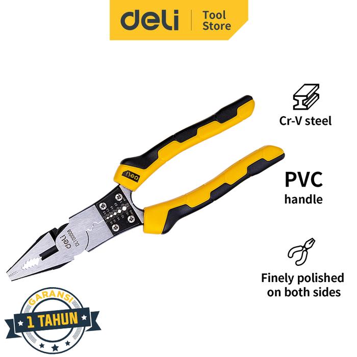 Tang Deli ini adalah solusi praktis untuk berbagai pekerjaan. Dibuat dari material Chrome Vanadium Steel tempaan berkualitas tinggi yang menjamin kekuatan dan ketahanan luar biasa. Pegangan dilapisi PVC yang empuk untuk kenyamanan genggaman maksimal dan mengurangi lelah saat bekerja. Desainnya multifungsi, menggantikan beberapa alat sekaligus, sehingga sangat efisien dan hemat ruang. Sangat cocok untuk keperluan rumah tangga, perbengkelan, proyek DIY, dan kebutuhan pertukangan lainnya. Dapatkan alat yang andal dan tahan lama untuk menyelesaikan pekerjaan dengan lebih cepat dan mudah.